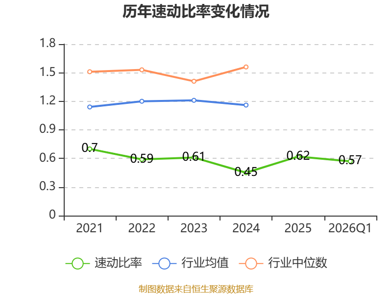 2026年第一季度,公司流动比率为1.01,速动比率为0.57。