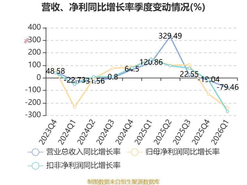 负债重大变化方面,截至2026年一季度末,公司短期借款较上年末减少0.13%,占公司总资产比重上升0.64个百分点;一年内到期的非流动负债较上年末减少97.53%,占公司总资产比重下降0.52个百分点;应付票据及应付账款较上年末减少6.47%,占公司总资产比重下降0.44个百分点;其他非流动负债较上年末没有变化,占公司总资产比重上升0.34个百分点。