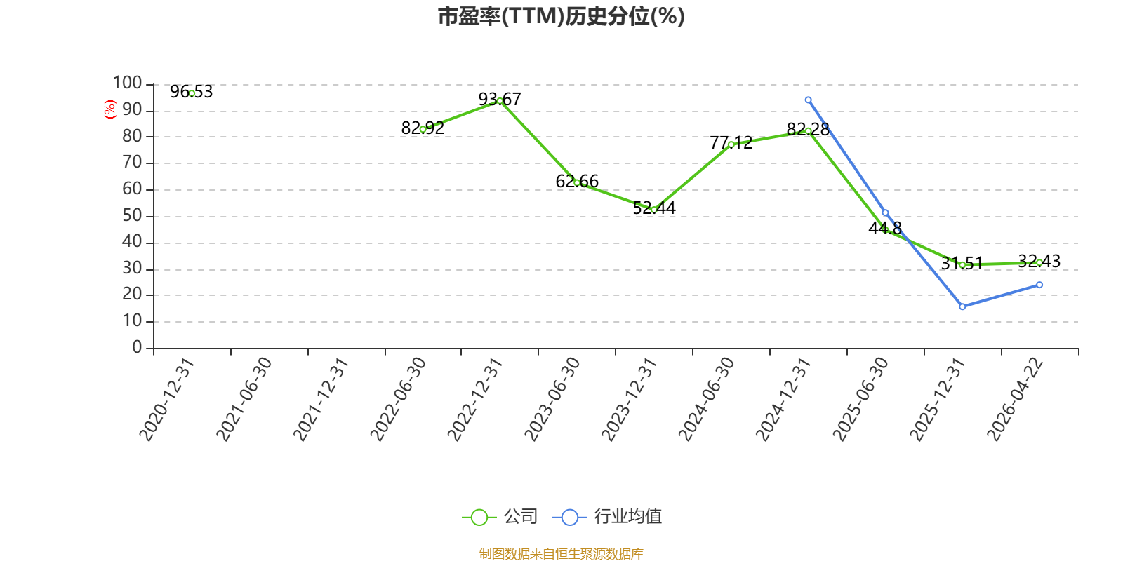 市盈率、市净率为负时,不显示当期分位数,会导致折线图中断。