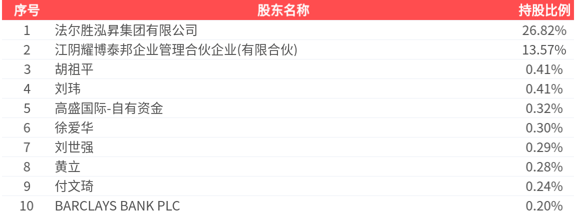公司股东户数为4.59万户,前十大股东持股数量为1.80亿股,占总股本比例为42.84%,前十大股东持股情况如下: