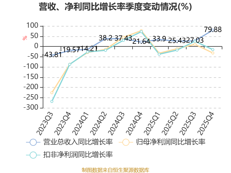 中证智能财讯东芯股份(688110)4月23日披露2025年年度报告。2025年,公司实现营业总收入9.21亿元,同比增长43.76%;归母净利润亏损1.95亿元,上年同期亏损1.67亿元;扣非净利润亏损2.22亿元,上年同期亏损2.01亿元;经营活动产生的现金流量净额为-1.58亿元,上年同期为-2.78亿元;报告期内,东芯股份基本每股收益为-0.45元,加权平均净资产收益率为-6.22%。