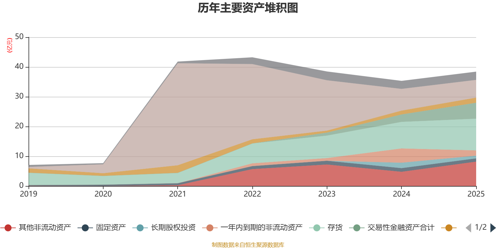 资产重大变化方面,截至2025年末,公司一年内到期的非流动资产较上年末减少63.18%,占公司总资产比重下降8.97个百分点;其他非流动资产较上年末增加71.09%,占公司总资产比重上升7.76个百分点;交易性金融资产合计较上年末增加113.81%,占公司总资产比重上升6.84个百分点;货币资金较上年末减少18.18%,占公司总资产比重下降5.12个百分点。