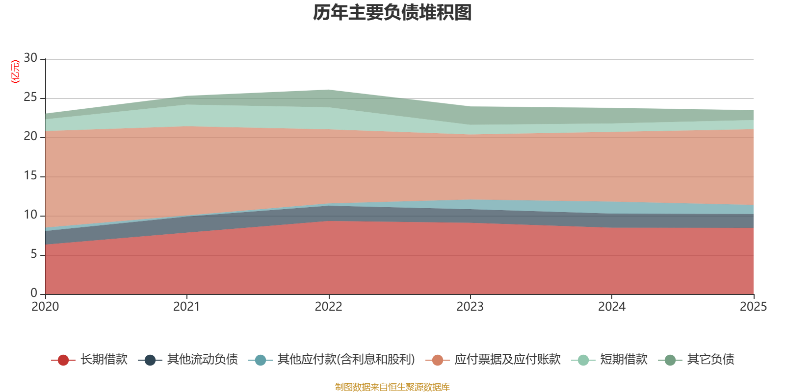 负债重大变化方面,截至2025年末,公司应付票据及应付账款较上年末增加8.68%,占公司总资产比重上升4.05个百分点;一年内到期的非流动负债较上年末减少86.68%,占公司总资产比重下降1.73个百分点;长期借款较上年末减少0.16%,占公司总资产比重上升1.5个百分点;其他应付款(含利息和股利)较上年末减少24.16%,占公司总资产比重下降0.88个百分点。