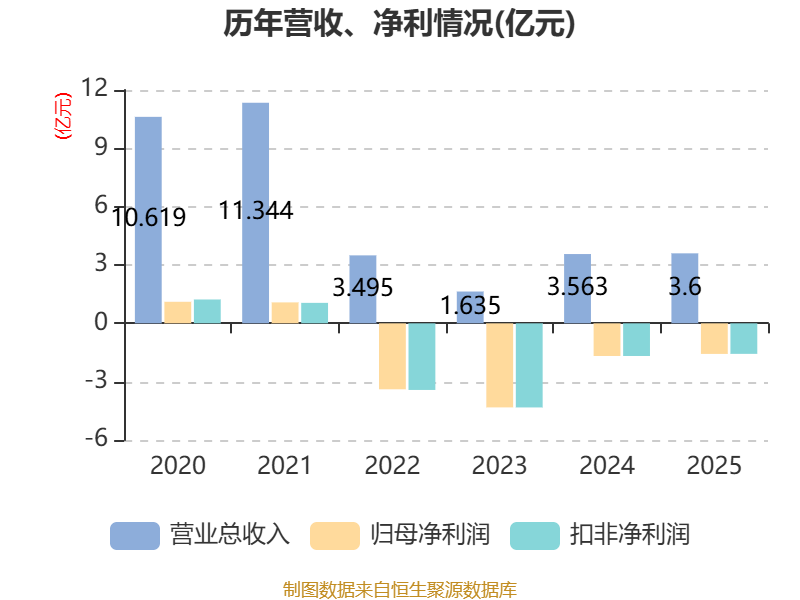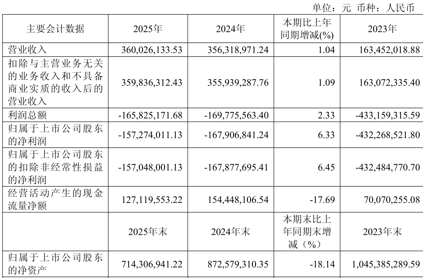 中证智能财讯正和生态(605069)4月23日披露2025年年度报告。2025年,公司实现营业总收入3.6亿元,同比增长1.04%;归母净利润亏损1.57亿元,上年同期亏损1.68亿元;扣非净利润亏损1.57亿元,上年同期亏损1.68亿元;经营活动产生的现金流量净额为1.27亿元,同比下降17.69%;报告期内,正和生态基本每股收益为-0.74元,加权平均净资产收益率为-19.81%。