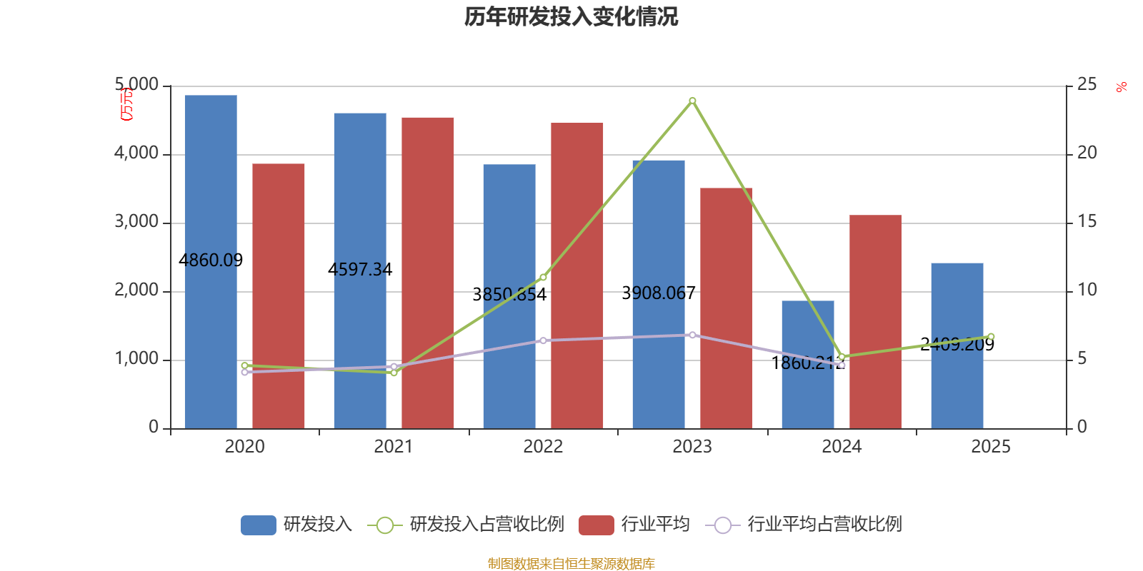 2025年全年,公司研发投入金额为2409.21万元,同比增长29.51%;研发投入占营业收入比例为6.69%,相比上年同期上升1.47个百分点。此外,公司全年研发投入资本化率为0%。