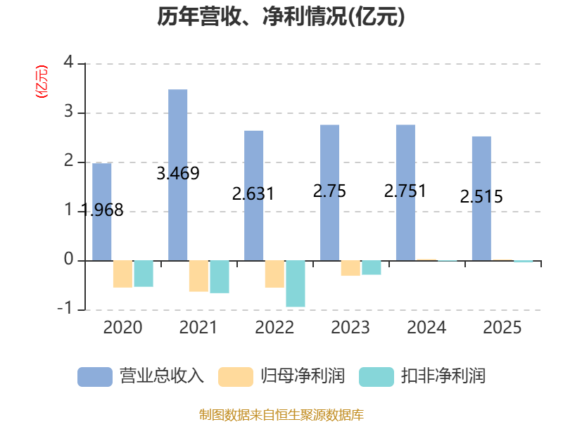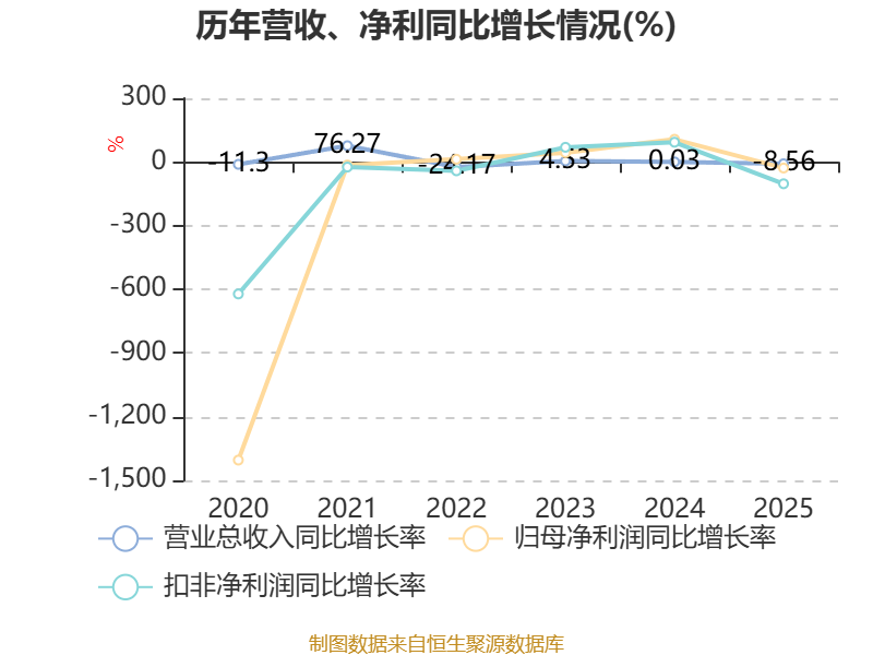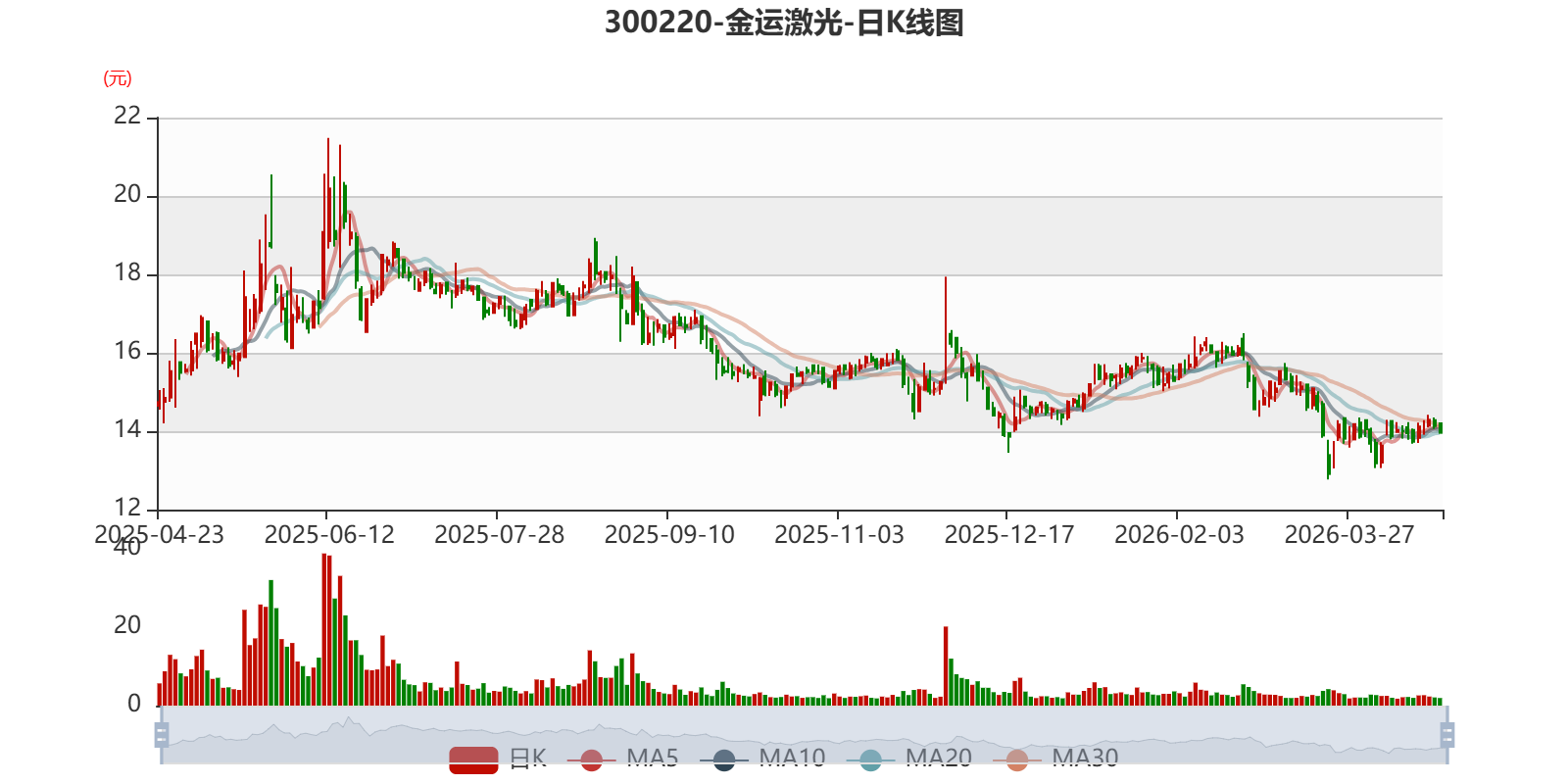 中证智能财讯金运激光(300220)4月23日披露2025年年度报告。2025年,公司实现营业总收入2.52亿元,同比下降8.56%;归母净利润150.61万元,同比下降28.72%;扣非净利润亏损426.05万元,上年同期亏损209.96万元;经营活动产生的现金流量净额为-1729.32万元,上年同期为1638.65万元;报告期内,金运激光基本每股收益为0.01元,加权平均净资产收益率为2.41%。