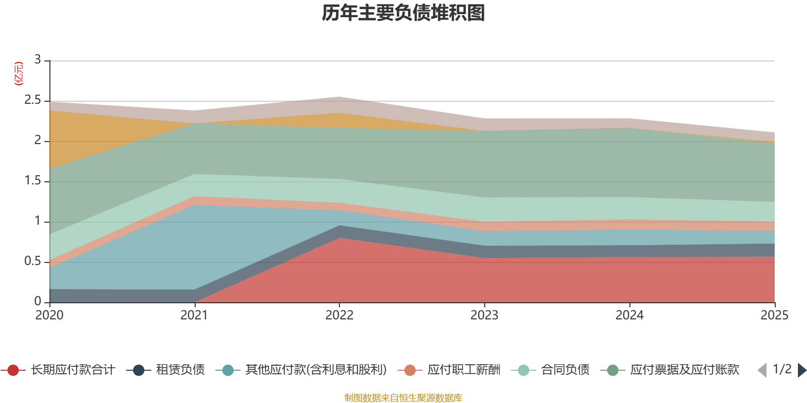 负债重大变化方面,截至2025年末,公司应付票据及应付账款较上年末减少15.52%,占公司总资产比重下降3.15个百分点;长期应付款合计较上年末增加0.82%,占公司总资产比重上升1.16个百分点;其他应付款(含利息和股利)较上年末减少18.83%,占公司总资产比重下降0.95个百分点;租赁负债较上年末增加11.84%,占公司总资产比重上升0.86个百分点。