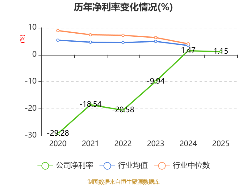 数据显示,2025年公司加权平均净资产收益率为2.41%,较上年同期下降1.06个百分点。公司2025年投入资本回报率为3.82%,较上年同期下降1.84个百分点。