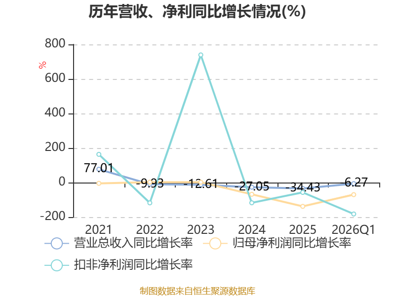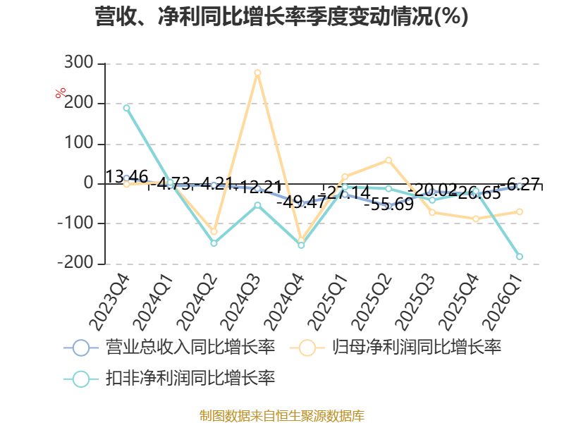 资产重大变化方面,截至2026年一季度末,公司交易性金融资产合计较上年末增加60.53%,占公司总资产比重上升7.45个百分点;应收票据及应收账款较上年末减少13.91%,占公司总资产比重下降2.67个百分点;其他非流动资产较上年末减少21.06%,占公司总资产比重下降2.65个百分点;货币资金较上年末减少25.77%,占公司总资产比重下降2.02个百分点。