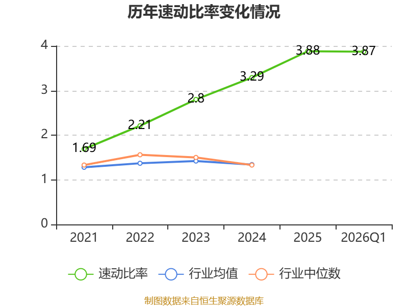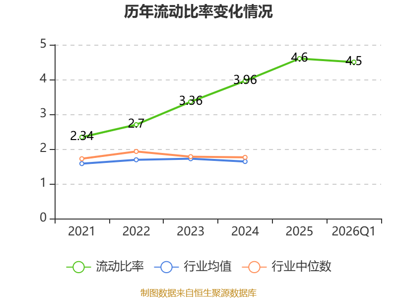 2026年第一季度,公司流动比率为4.5,速动比率为3.87。