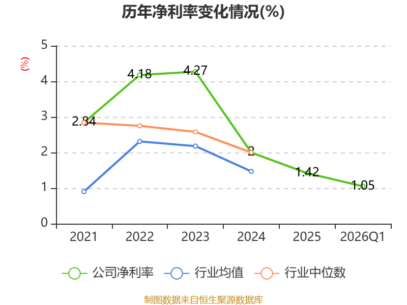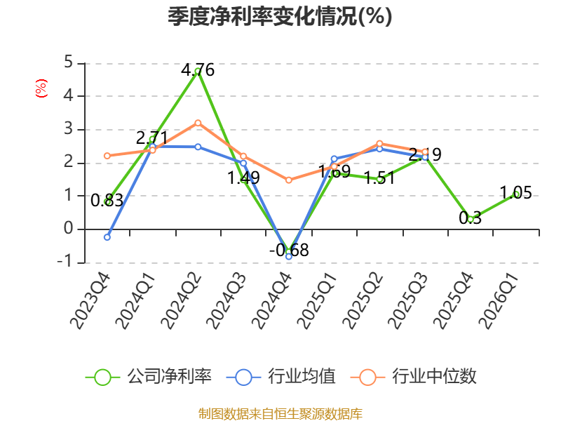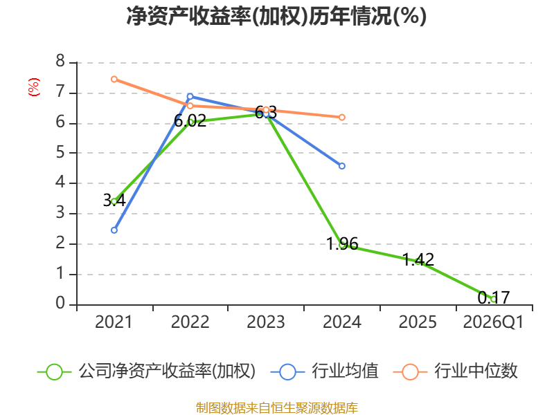 盈利能力方面, 2026年一季度公司加权平均净资产收益率为0.17%,同比下降0.08个百分点。公司2026年第一季度投入资本回报率为0.23%,较上年同期下降0.12个百分点。
