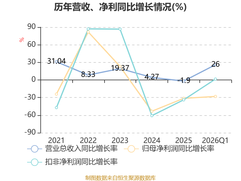 资产重大变化方面,截至2026年一季度末,公司存货较上年末增加63.4%,占公司总资产比重上升4.45个百分点;货币资金较上年末减少23.59%,占公司总资产比重下降2.92个百分点;应收款项融资较上年末减少60.24%,占公司总资产比重下降0.77个百分点;衍生金融资产较上年末减少67.6%,占公司总资产比重下降0.5个百分点。