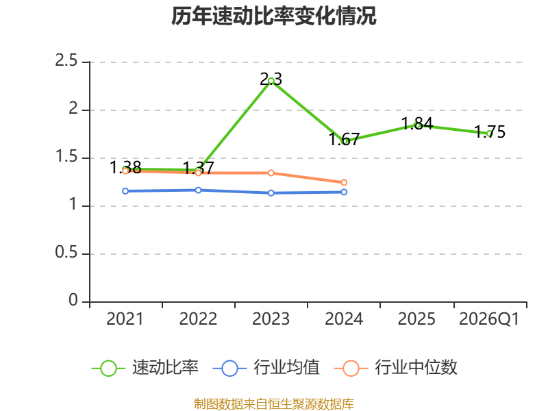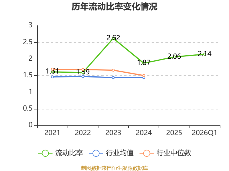 2026年第一季度,公司流动比率为2.14,速动比率为1.75。