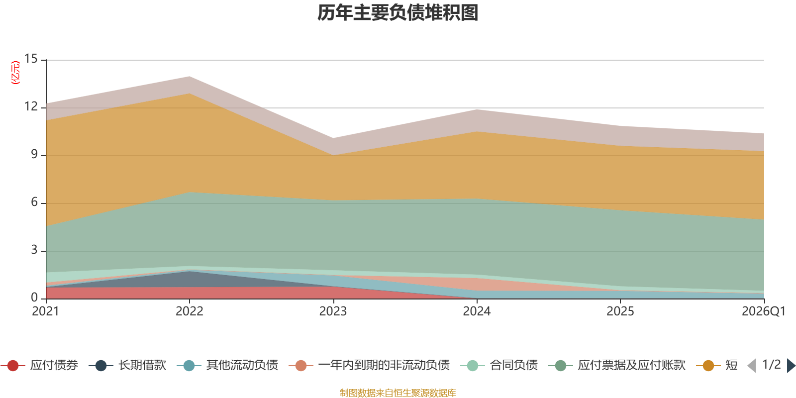 负债重大变化方面,截至2026年一季度末,公司短期借款较上年末增加6.4%,占公司总资产比重上升0.93个百分点;应付票据及应付账款较上年末减少6.47%,占公司总资产比重下降0.69个百分点;其他流动负债较上年末减少36.63%,占公司总资产比重下降0.48个百分点;合同负债较上年末减少41.28%,占公司总资产比重下降0.29个百分点。