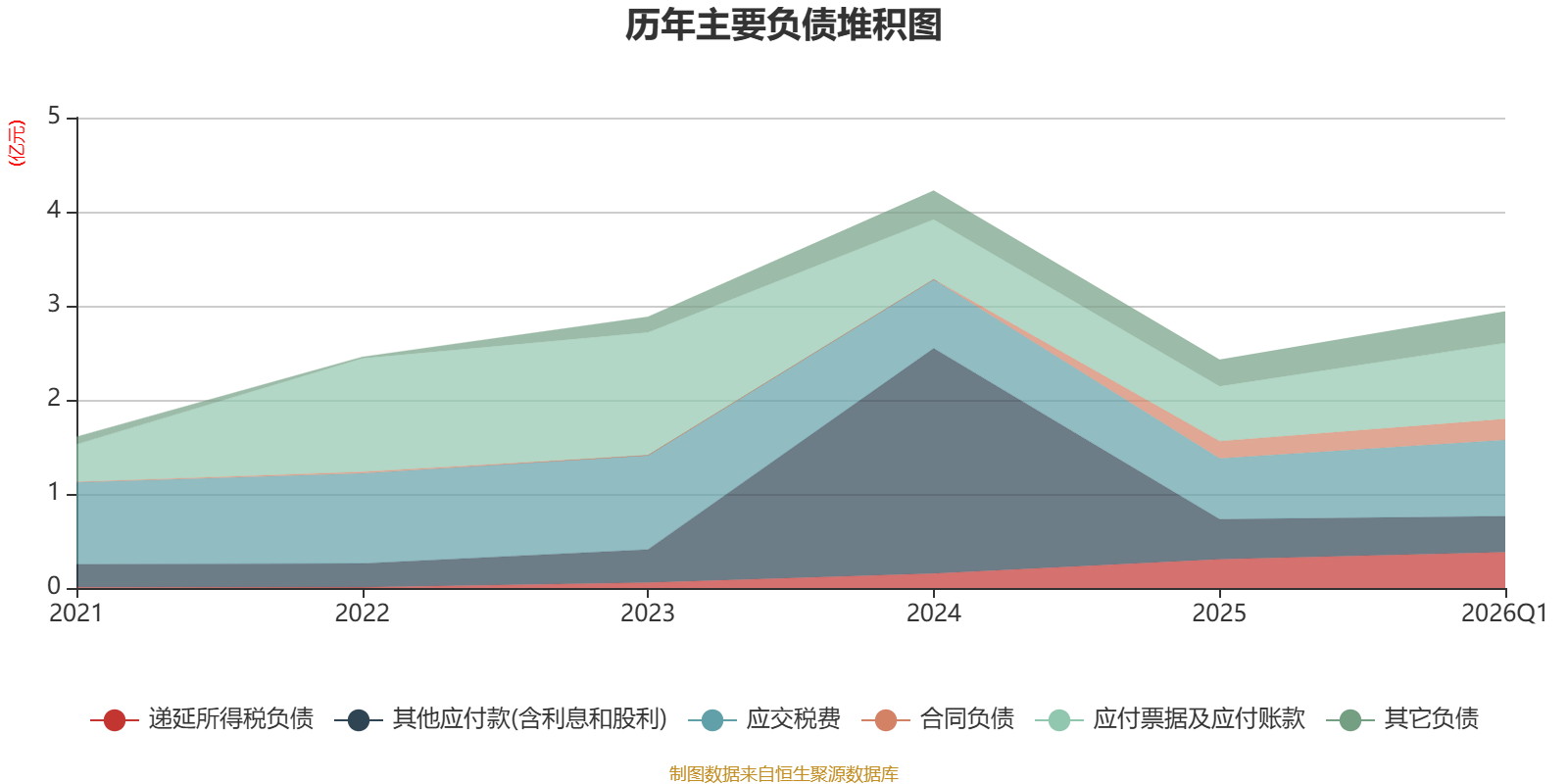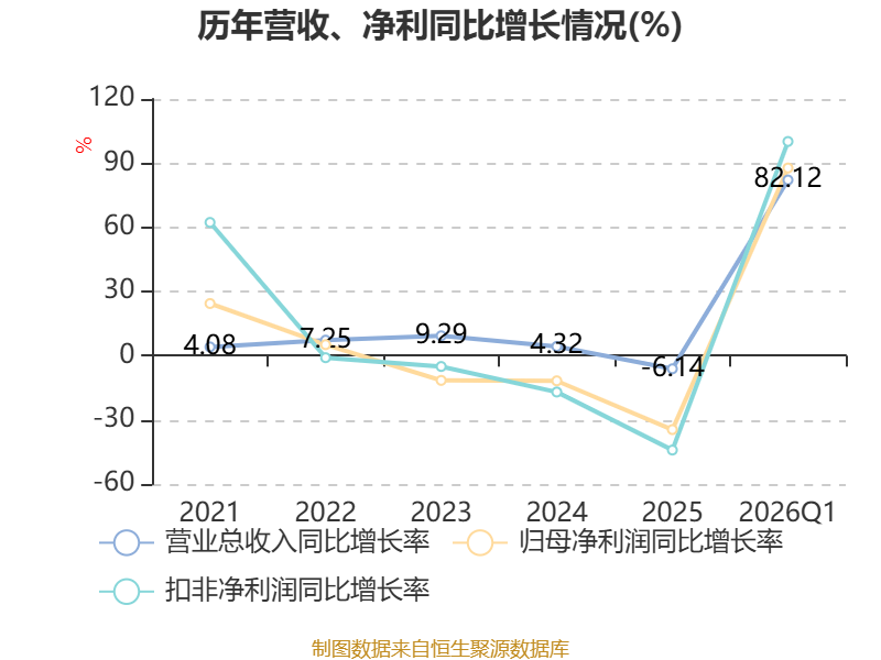 负债重大变化方面,截至2026年一季度末,公司应付票据及应付账款较上年末增加38.25%,占公司总资产比重上升0.33个百分点;应交税费较上年末增加25.56%,占公司总资产比重上升0.23个百分点;递延所得税负债较上年末增加24.49%,占公司总资产比重上升0.1个百分点;其他应付款(含利息和股利)较上年末减少9.98%,占公司总资产比重下降0.09个百分点。
