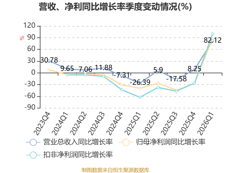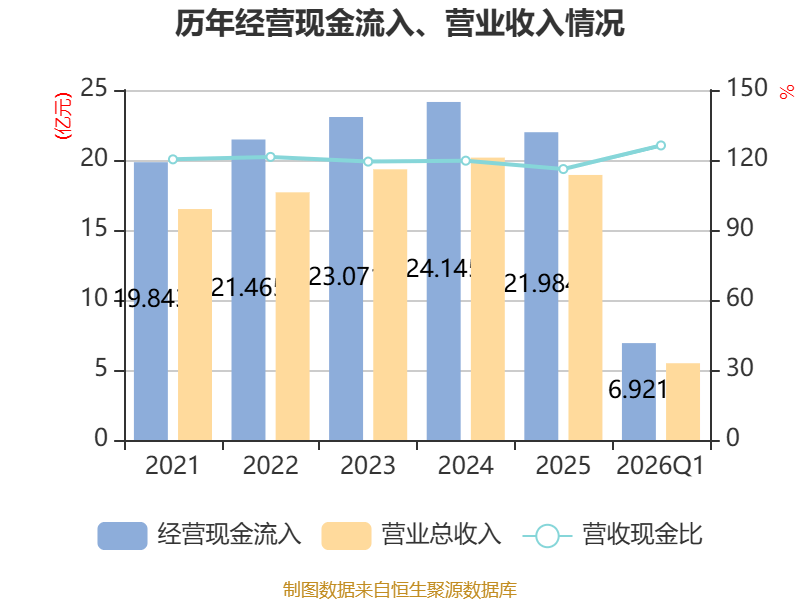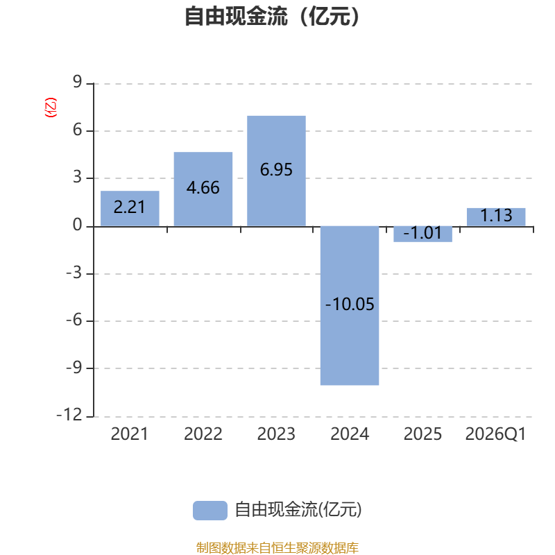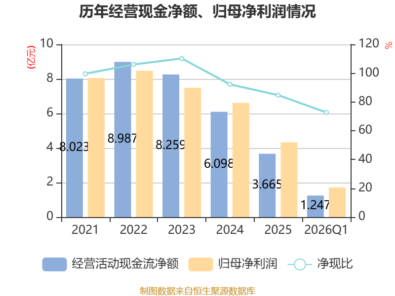 截至2026年一季度末,公司经营活动现金流净额为1.25亿元,同比增加1.91亿元;筹资活动现金流净额-78.21万元,同比增加4.34亿元;投资活动现金流净额-122万元,上年同期为1.16亿元。