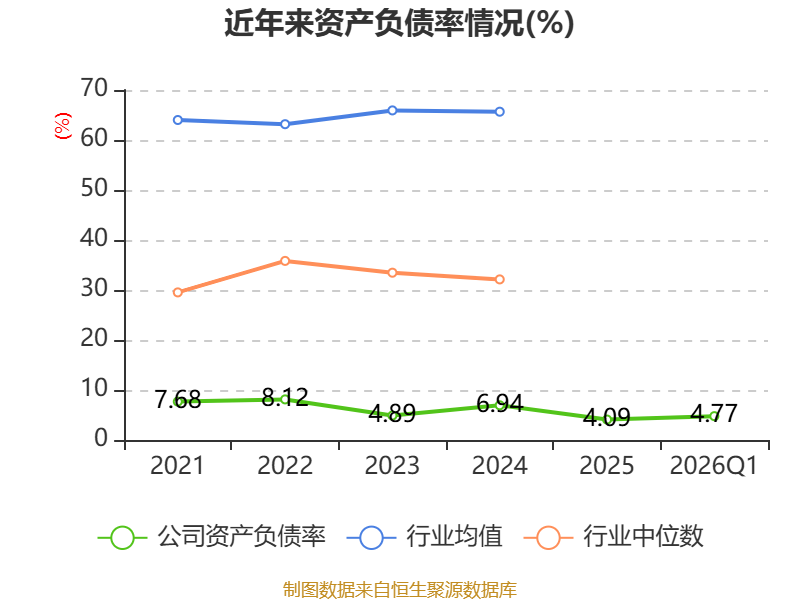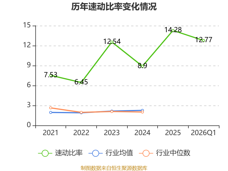 2026年第一季度,公司流动比率为13.51,速动比率为12.77。