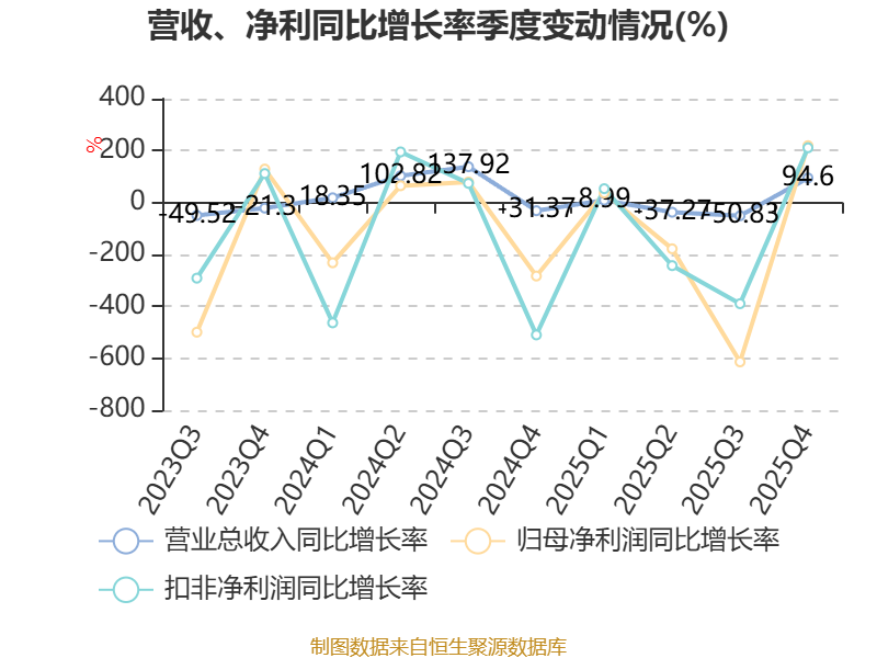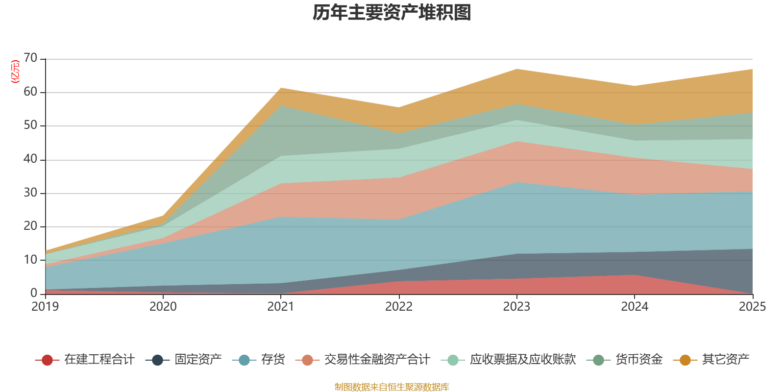 资产重大变化方面,截至2025年末,公司在建工程合计较上年末减少98.93%,占公司总资产比重下降9.08个百分点;固定资产较上年末增加95.69%,占公司总资产比重上升8.93个百分点;交易性金融资产合计较上年末减少40.06%,占公司总资产比重下降7.93个百分点;应收票据及应收账款较上年末增加74.54%,占公司总资产比重上升5.05个百分点。