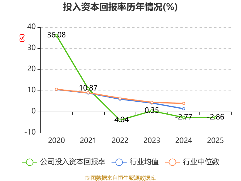 数据显示,2025年公司加权平均净资产收益率为-2.65%,较上年同期下降0.29个百分点。公司2025年投入资本回报率为-2.86%,较上年同期下降0.09个百分点。