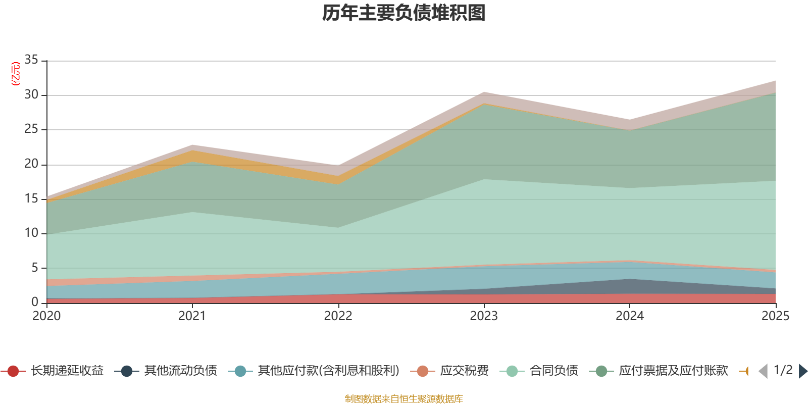 负债重大变化方面,截至2025年末,公司应付票据及应付账款较上年末增加53.35%,占公司总资产比重上升5.61个百分点;合同负债较上年末增加23.74%,占公司总资产比重上升2.43个百分点;其他流动负债较上年末减少63.29%,占公司总资产比重下降2.3个百分点;其他应付款(含利息和股利)较上年末减少5.09%,占公司总资产比重下降0.48个百分点。