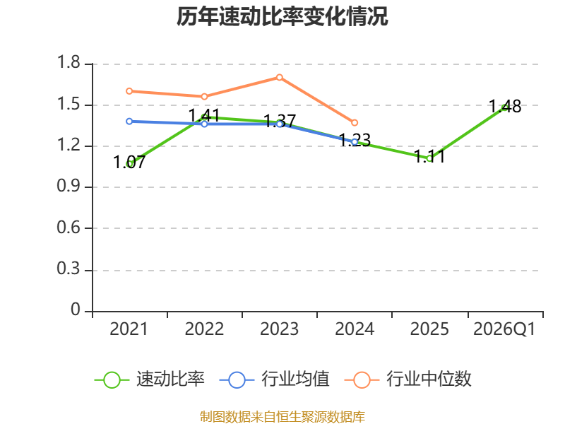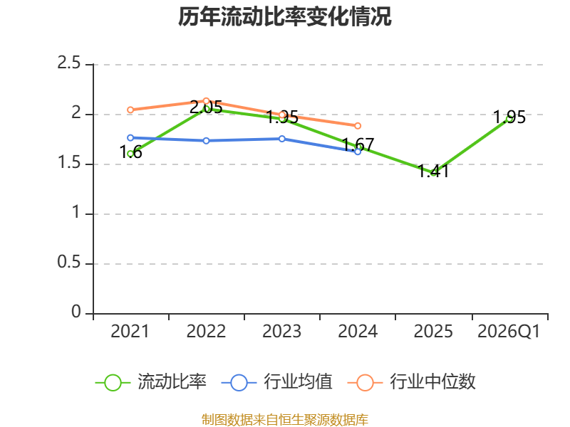 2026年第一季度,公司流动比率为1.95,速动比率为1.48。