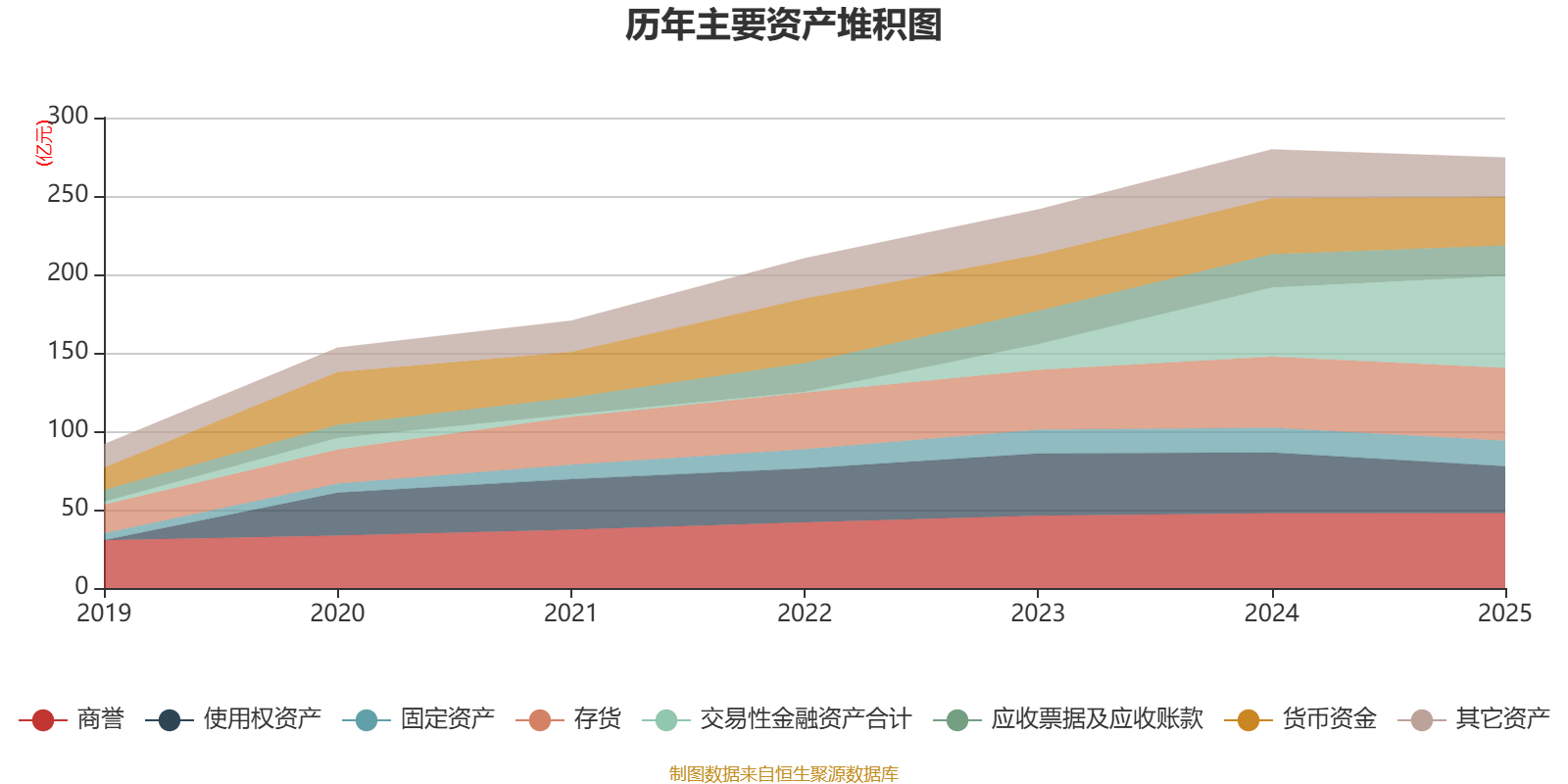 资产重大变化方面,截至2025年末,公司交易性金融资产合计较上年末增加32.84%,占公司总资产比重上升5.57个百分点;使用权资产较上年末减少22.68%,占公司总资产比重下降2.94个百分点;货币资金较上年末减少13.92%,占公司总资产比重下降1.57个百分点;其他权益工具投资较上年末减少100%,占公司总资产比重下降1.22个百分点。