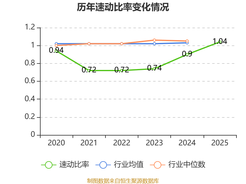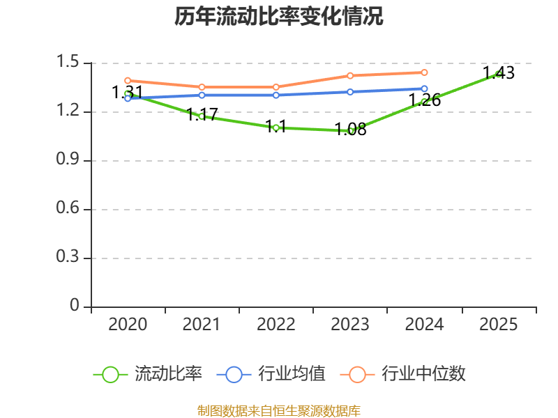 2025年,公司流动比率为1.43,速动比率为1.04。