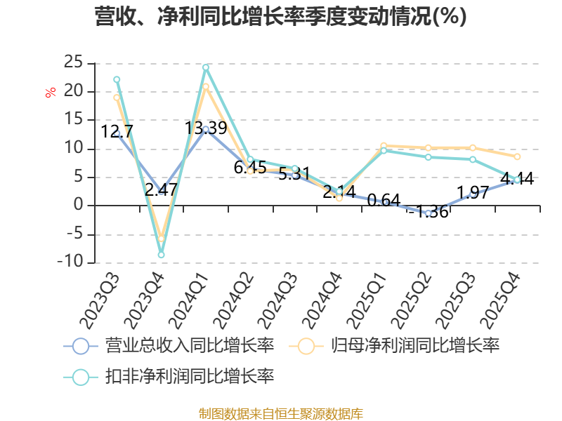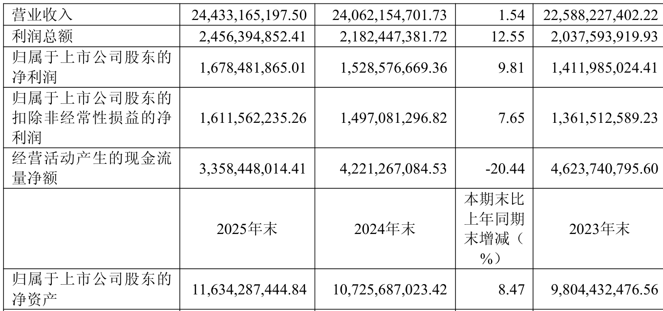 数据显示,2025年公司加权平均净资产收益率为14.98%,较上年同期上升0.31个百分点。公司2025年投入资本回报率为11.48%,较上年同期上升0.06个百分点。