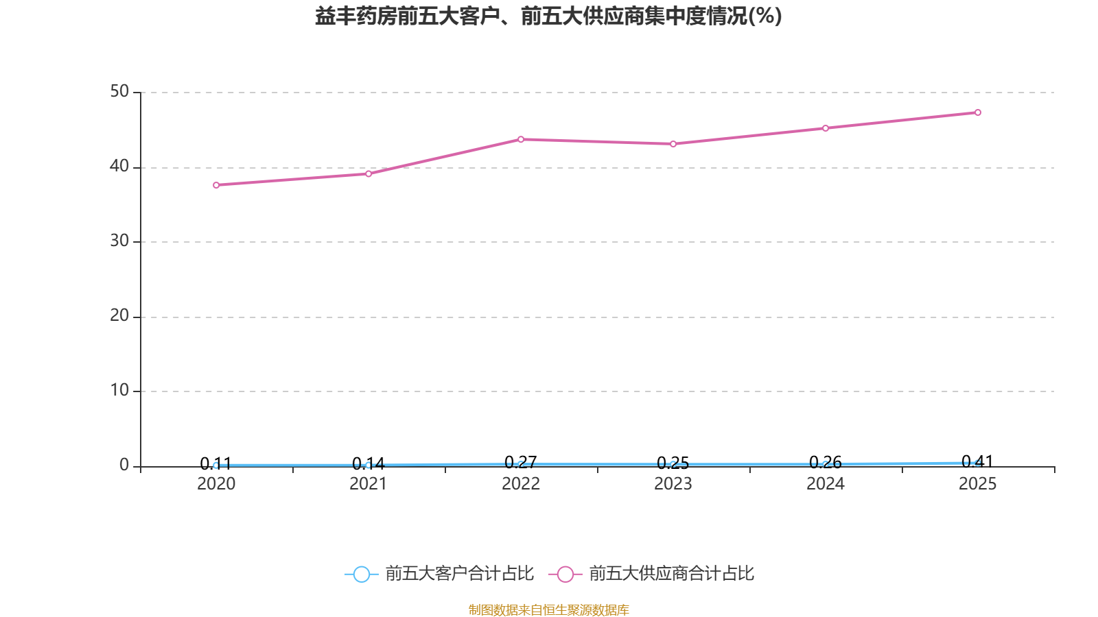 2025年,益丰药房的商誉达到47.65亿元,相当于同期公司净资产116.34亿元的40.96%。
