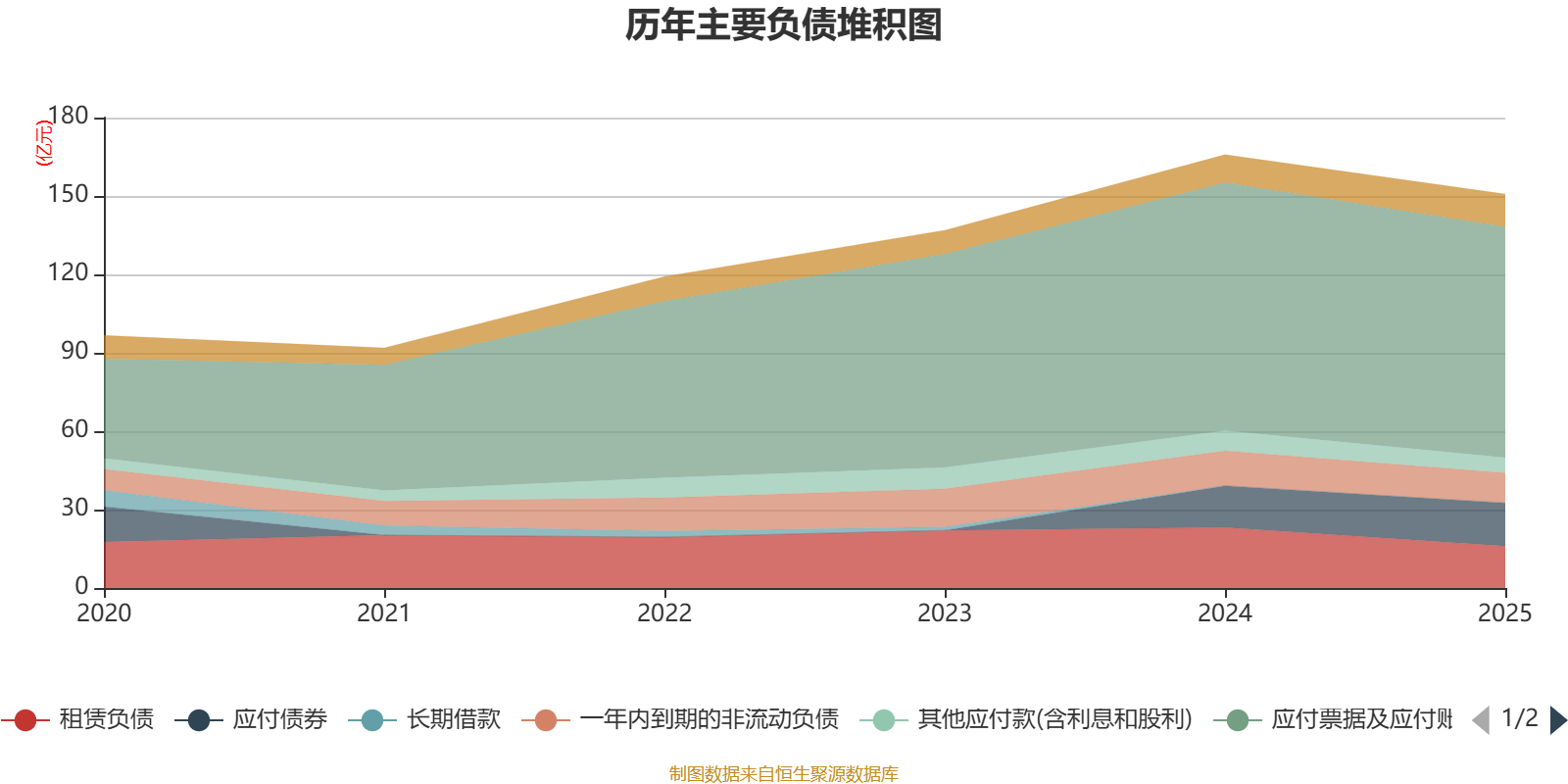 负债重大变化方面,截至2025年末,公司租赁负债较上年末减少30.62%,占公司总资产比重下降2.42个百分点;应付票据及应付账款较上年末减少6.98%,占公司总资产比重下降1.77个百分点;其他应付款(含利息和股利)较上年末减少24.66%,占公司总资产比重下降0.64个百分点;一年内到期的非流动负债较上年末减少14.11%,占公司总资产比重下降0.6个百分点。