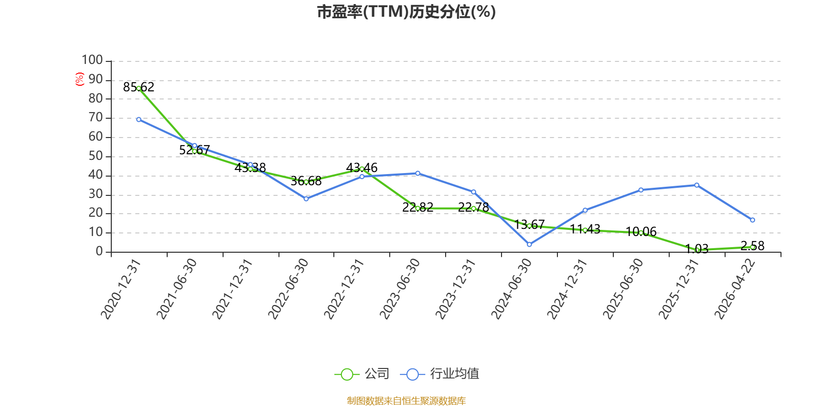 市盈率、市净率为负时,不显示当期分位数,会导致折线图中断。