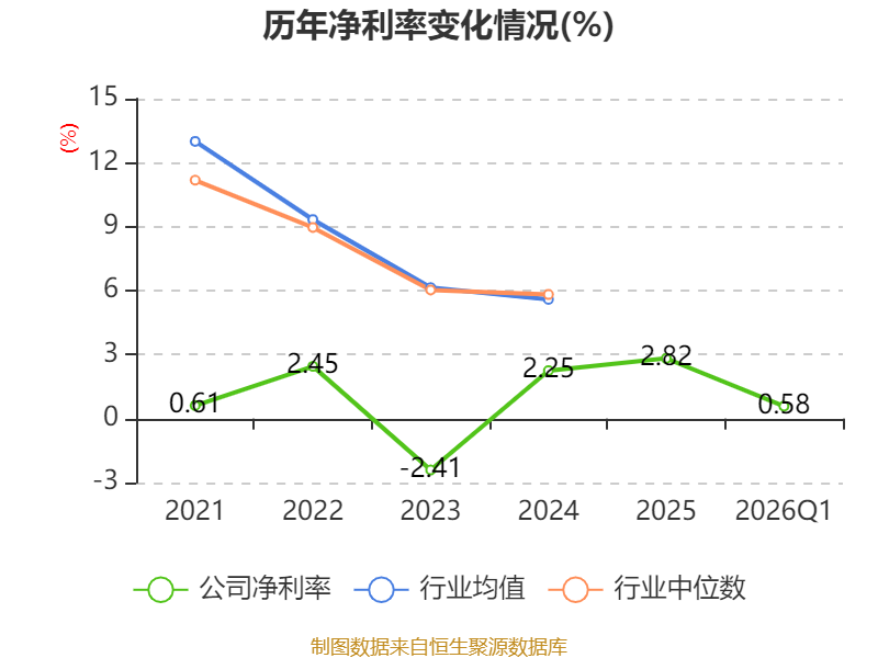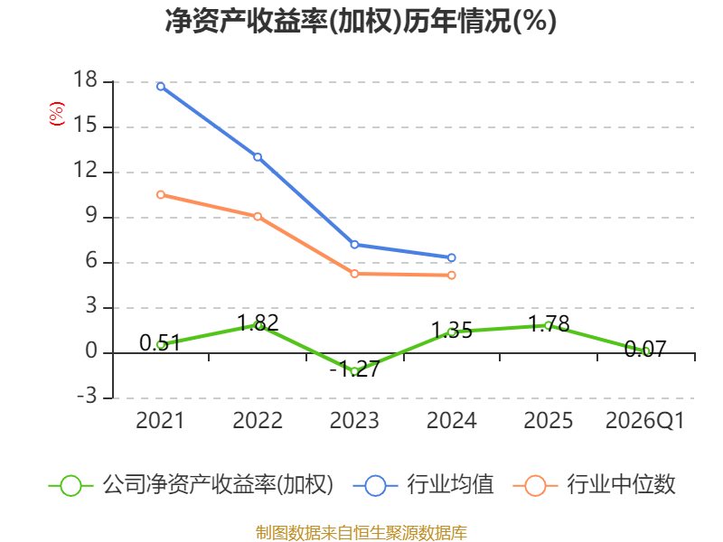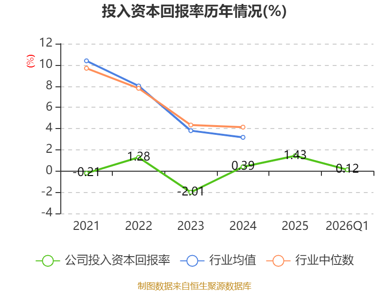 盈利能力方面, 2026年一季度公司加权平均净资产收益率为0.07%,同比下降0.39个百分点。公司2026年第一季度投入资本回报率为0.12%,较上年同期下降0.21个百分点。