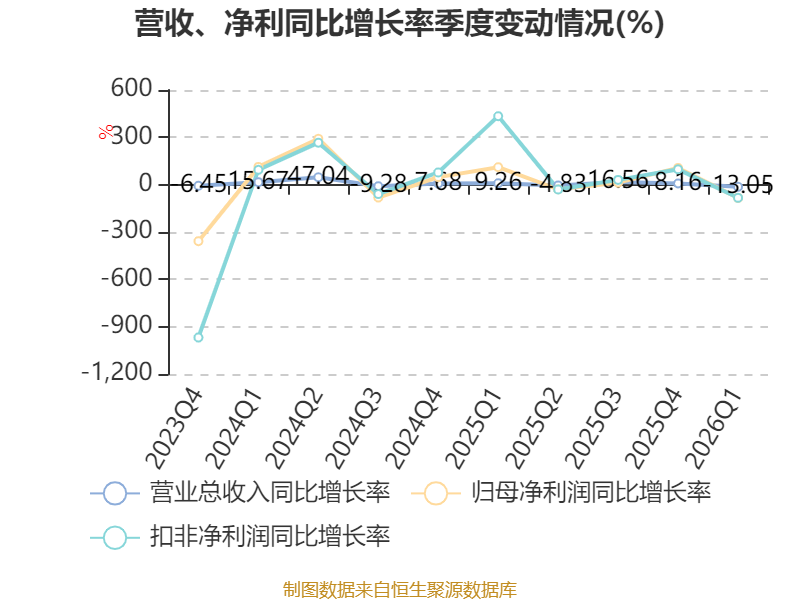 资产重大变化方面,截至2026年一季度末,公司交易性金融资产合计较上年末减少100%,占公司总资产比重下降8.5个百分点;货币资金较上年末增加32.15%,占公司总资产比重上升7.65个百分点;应收票据及应收账款较上年末减少24.46%,占公司总资产比重下降3.93个百分点;应收款项融资较上年末增加118.32%,占公司总资产比重上升2.49个百分点。