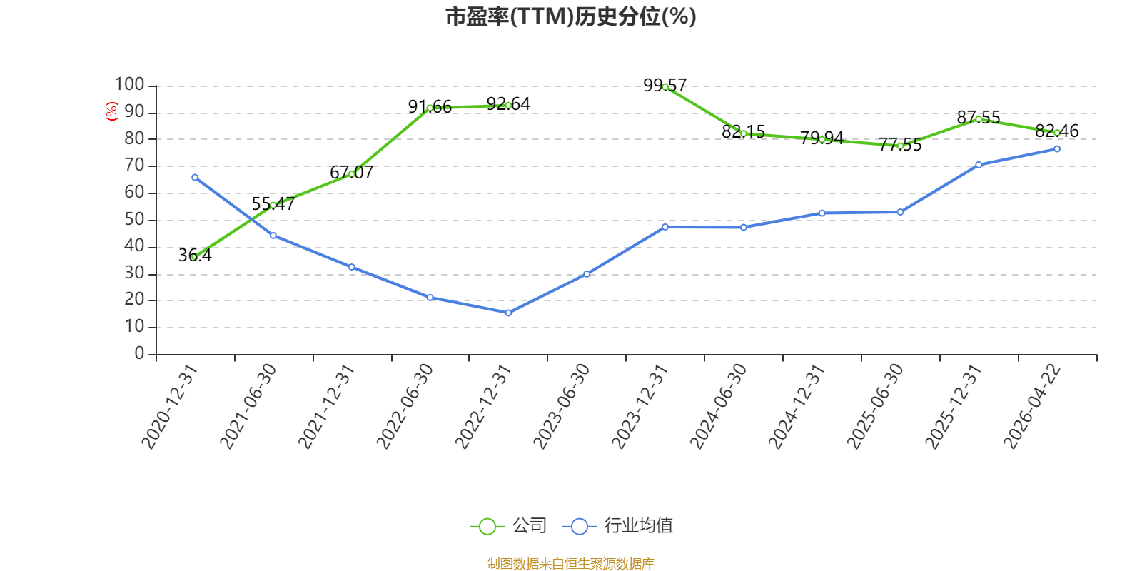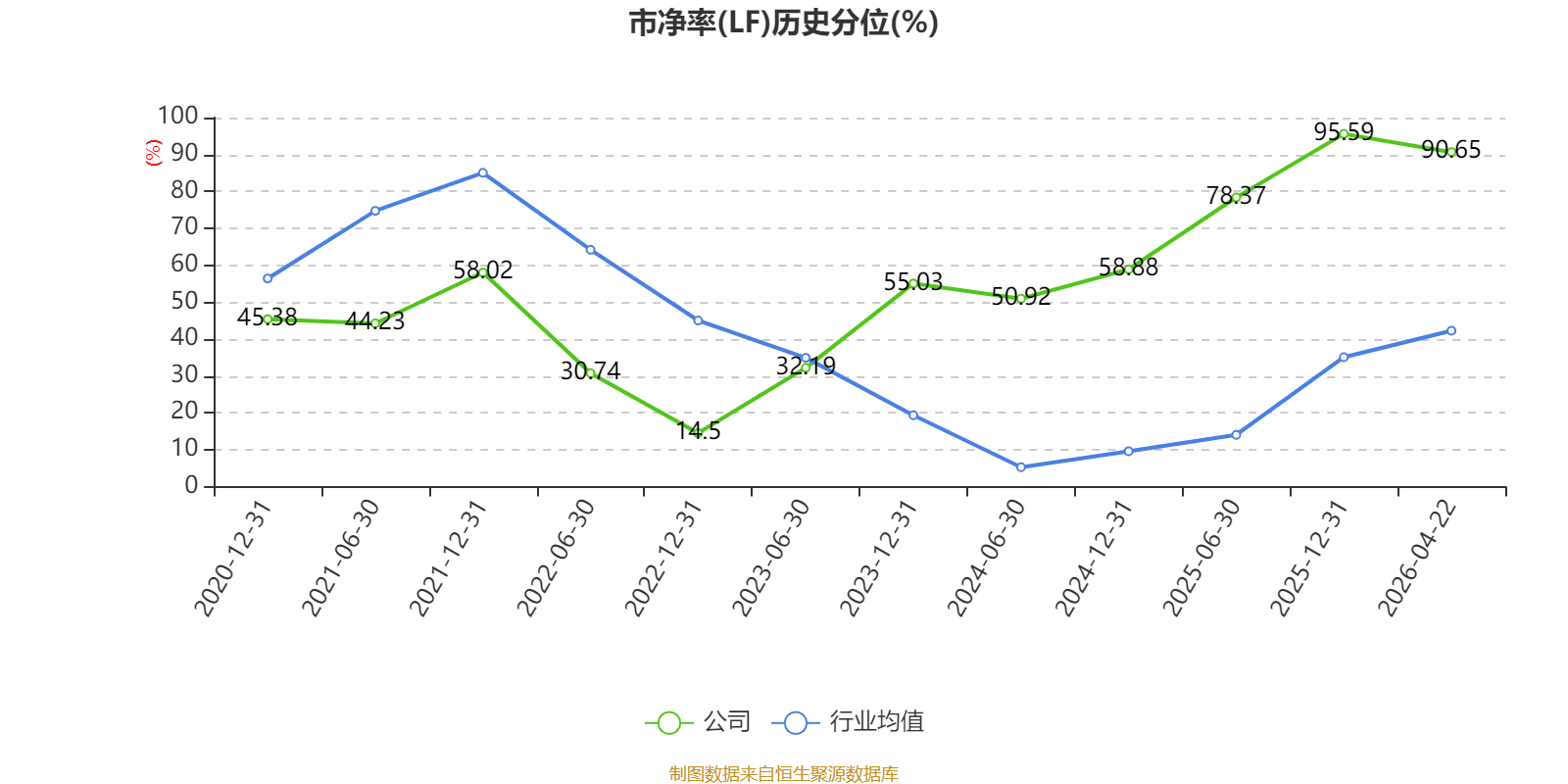 市盈率、市净率为负时,不显示当期分位数,会导致折线图中断。