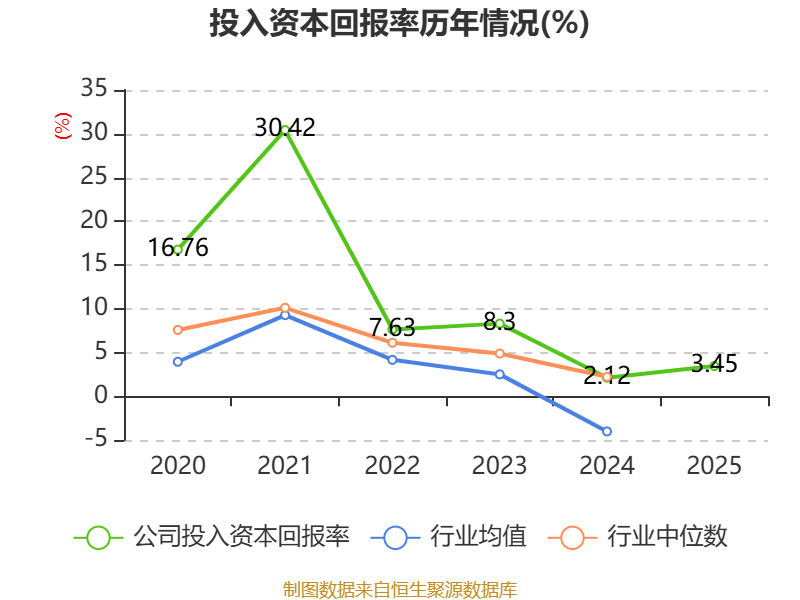 数据显示,2025年公司加权平均净资产收益率为4.57%,较上年同期上升1.7个百分点。公司2025年投入资本回报率为3.45%,较上年同期上升1.33个百分点。