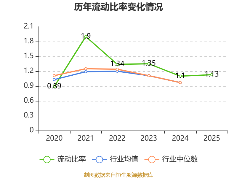 2025年,公司流动比率为1.13,速动比率为0.82。