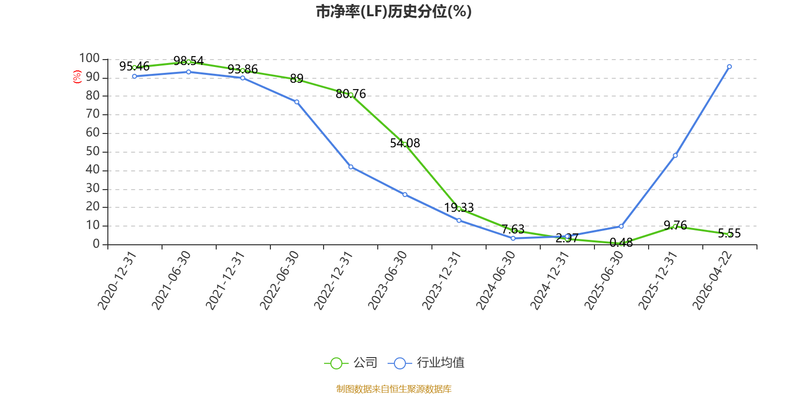 市盈率、市净率为负时,不显示当期分位数,会导致折线图中断。