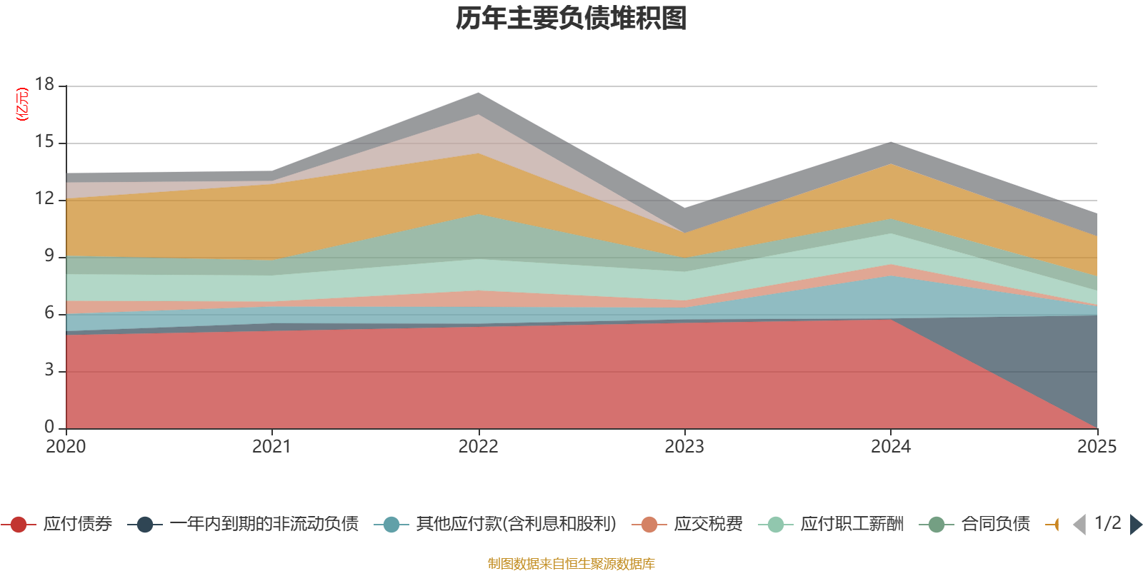 负债重大变化方面,截至2025年末,公司一年内到期的非流动负债较上年末增加10845.3%,占公司总资产比重上升8.9个百分点;应付债券较上年末减少100%,占公司总资产比重下降7.98个百分点;其他应付款(含利息和股利)较上年末减少78.44%,占公司总资产比重下降2.41个百分点;应付职工薪酬较上年末减少54.14%,占公司总资产比重下降1.14个百分点。