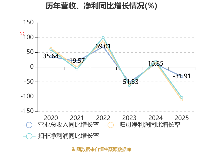 资产重大变化方面,截至2025年末,公司一年内到期的非流动资产占公司总资产的4.87%,上年末为0;货币资金较上年末减少44.19%,占公司总资产比重下降4.58个百分点;应收票据及应收账款较上年末减少30.24%,占公司总资产比重下降3.85个百分点;固定资产较上年末减少2.45%,占公司总资产比重上升1.17个百分点。