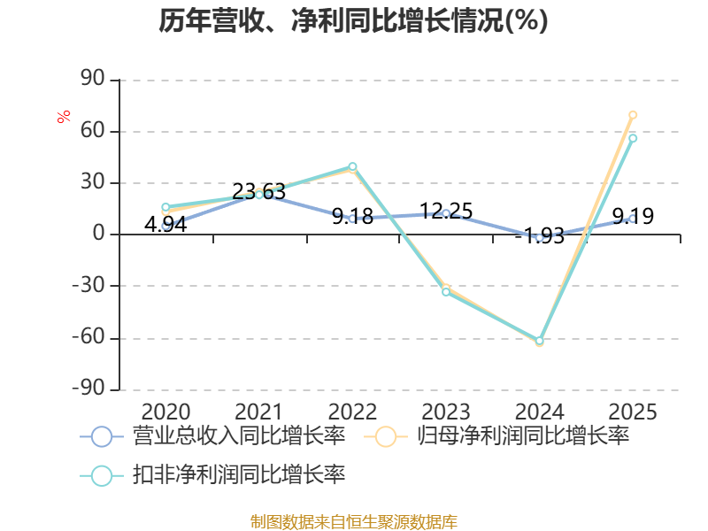 中证智能财讯立新能源(001258)4月23日披露2025年年度报告。2025年,公司实现营业总收入10.6亿元,同比增长9.19%;归母净利润8507.85万元,同比增长69.54%;扣非净利润7777.88万元,同比增长55.94%;经营活动产生的现金流量净额为5.96亿元,同比增长67.59%;报告期内,立新能源基本每股收益为0.09元,加权平均净资产收益率为2.87%。公司2025年度分配预案为:拟向全体股东每10股派现0.3元(含税)。