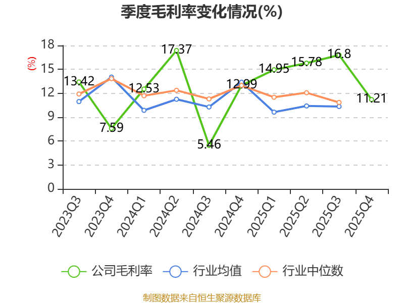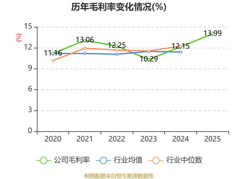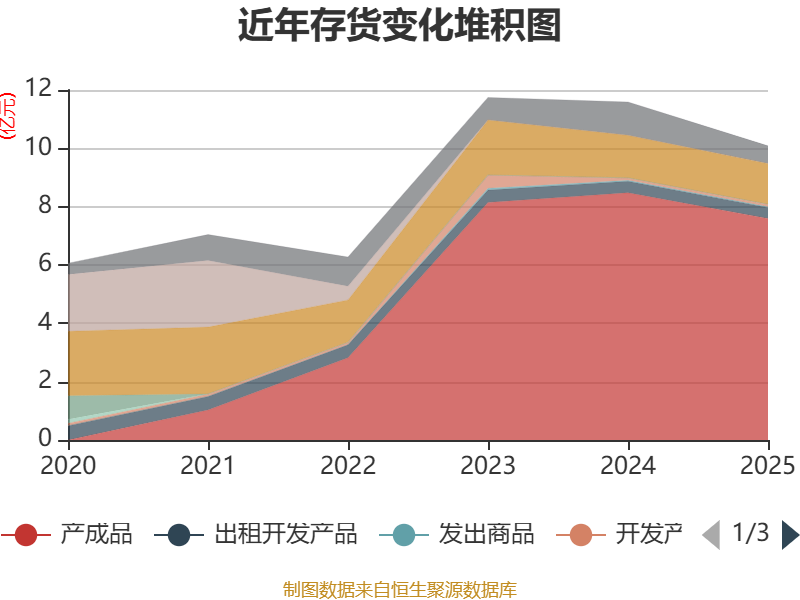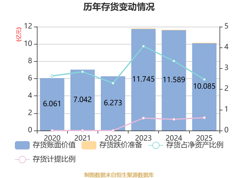 从存货变动来看,截至2025年末,公司存货账面价值为10.09亿元,占净资产的2.46%,较上年末减少1.5亿元。其中,存货跌价准备为624.84万元,计提比例为0.62%。