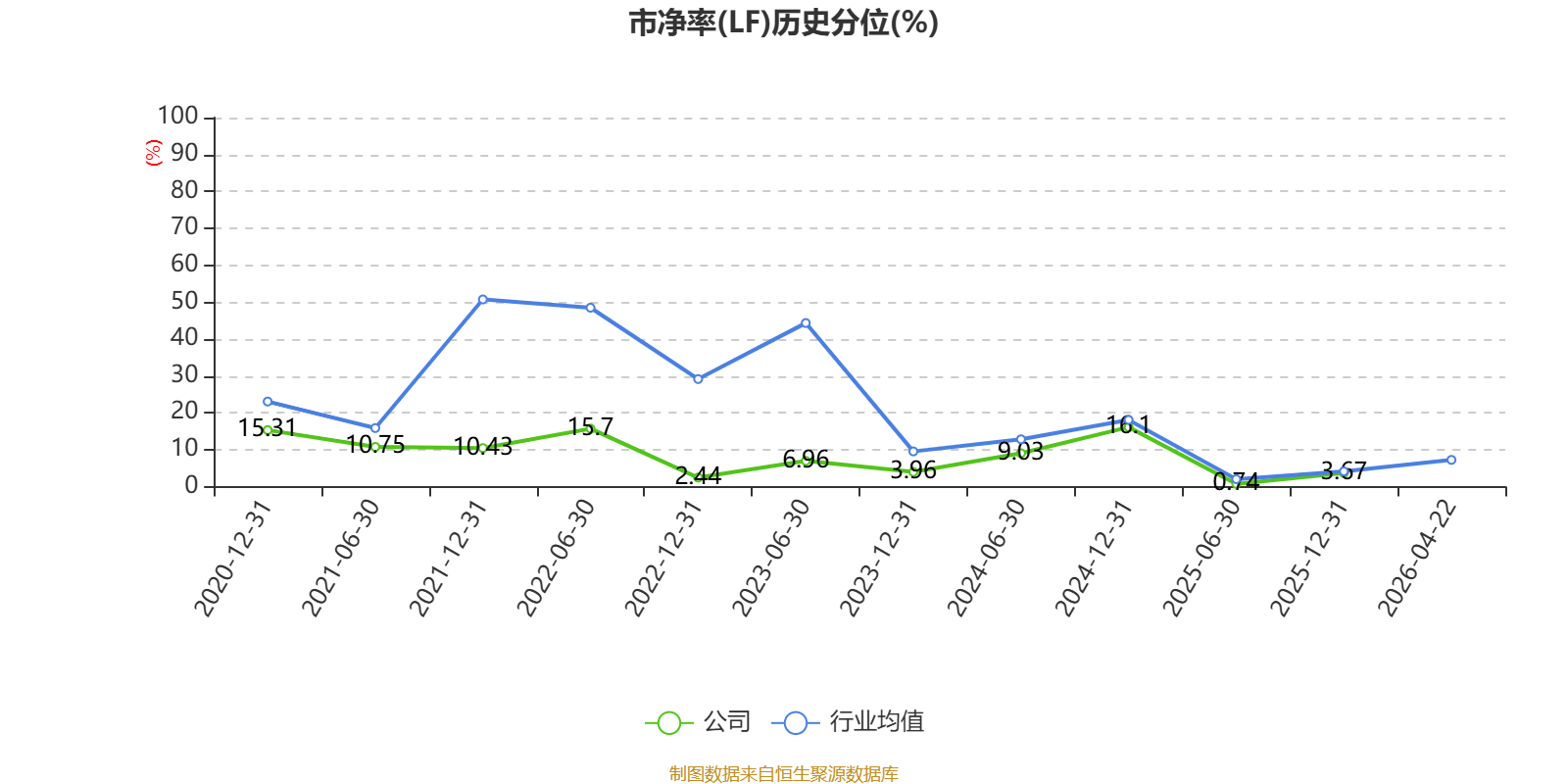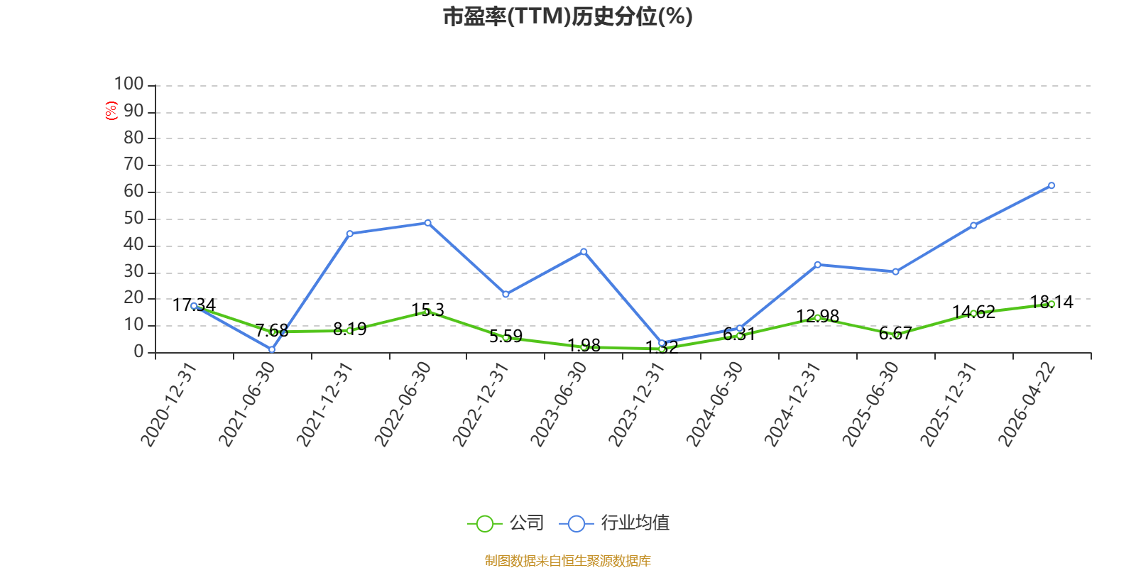 市盈率、市净率为负时,不显示当期分位数,会导致折线图中断。