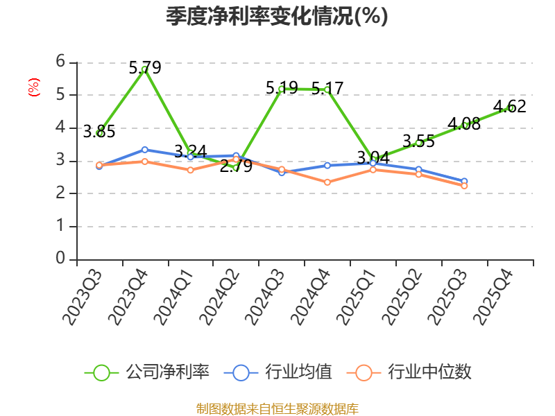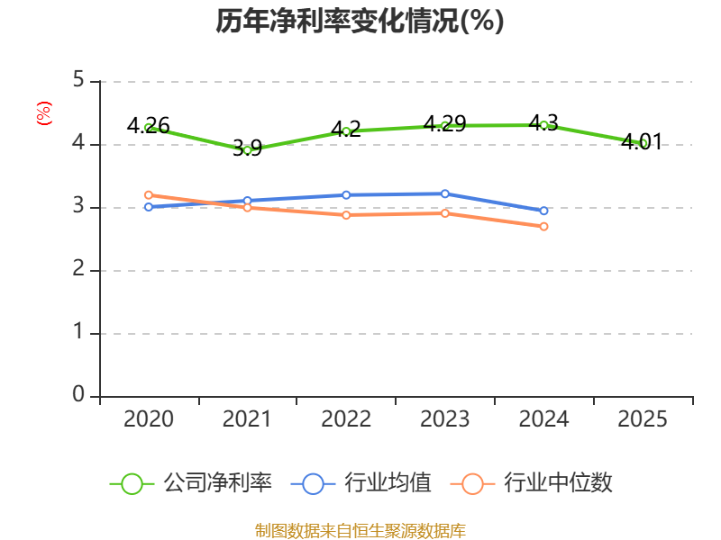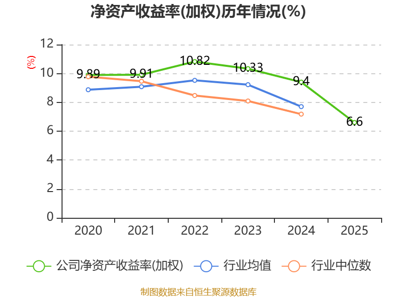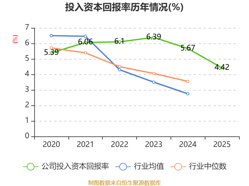 数据显示,2025年公司加权平均净资产收益率为6.6%,较上年同期下降2.8个百分点。公司2025年投入资本回报率为4.42%,较上年同期下降1.25个百分点。