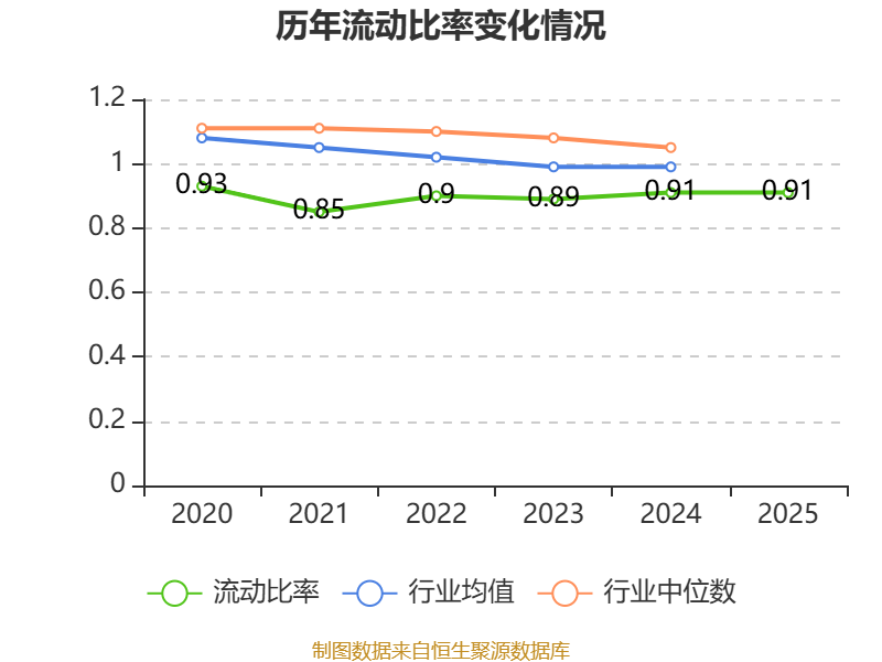 2025年,公司流动比率为0.91,速动比率为0.9。