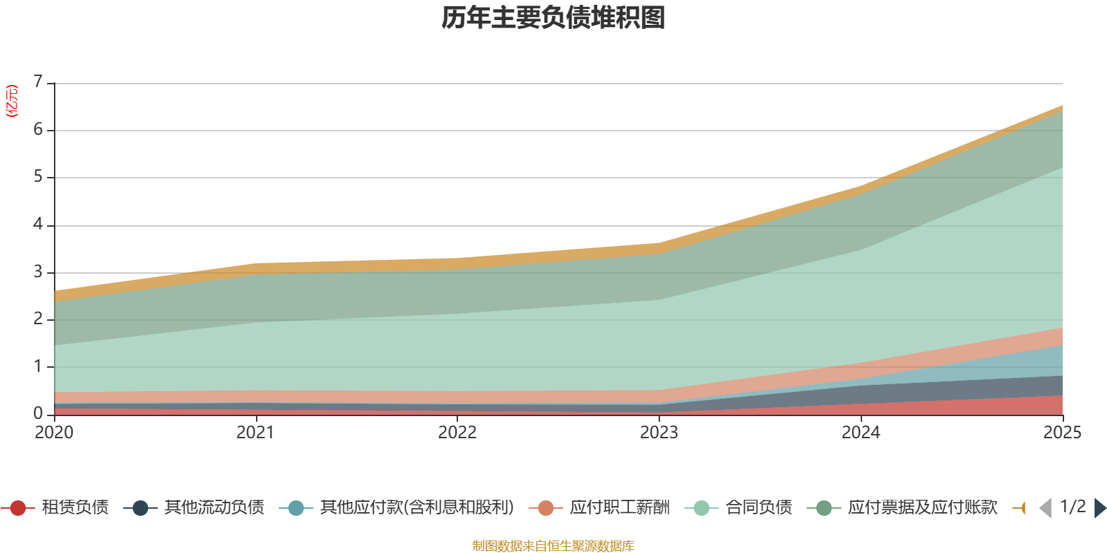 负债重大变化方面,截至2025年末,公司合同负债较上年末增加42.12%,占公司总资产比重上升3.92个百分点;其他应付款(含利息和股利)较上年末增加344.22%,占公司总资产比重上升2.65个百分点;租赁负债较上年末增加76.59%,占公司总资产比重上升0.81个百分点;应付票据及应付账款较上年末增加1.18%,占公司总资产比重下降0.73个百分点。