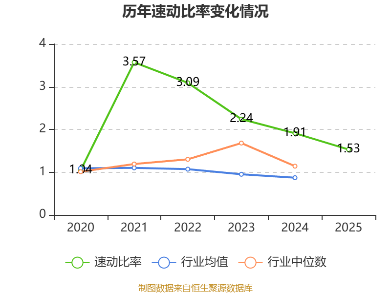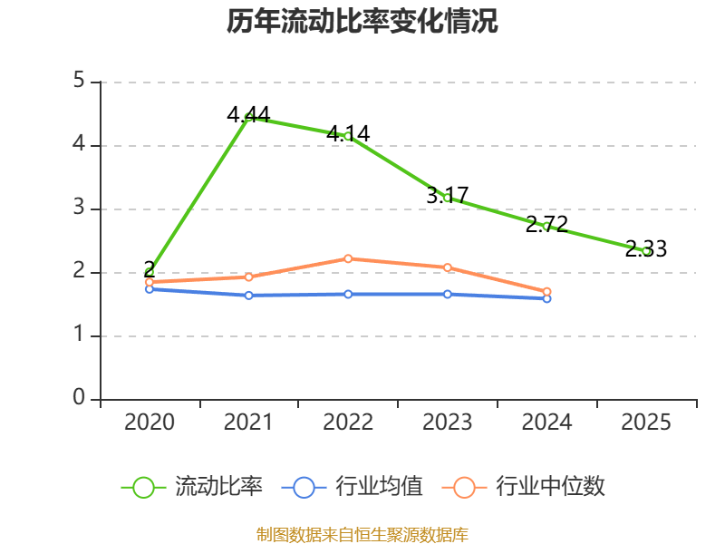 2025年,公司流动比率为2.33,速动比率为1.53。