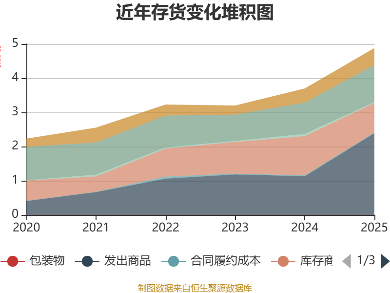 从存货变动来看,截至2025年末,公司存货账面价值为4.88亿元,占净资产的42.76%,较上年末增加1.18亿元。其中,存货跌价准备为2751.84万元,计提比例为5.34%。