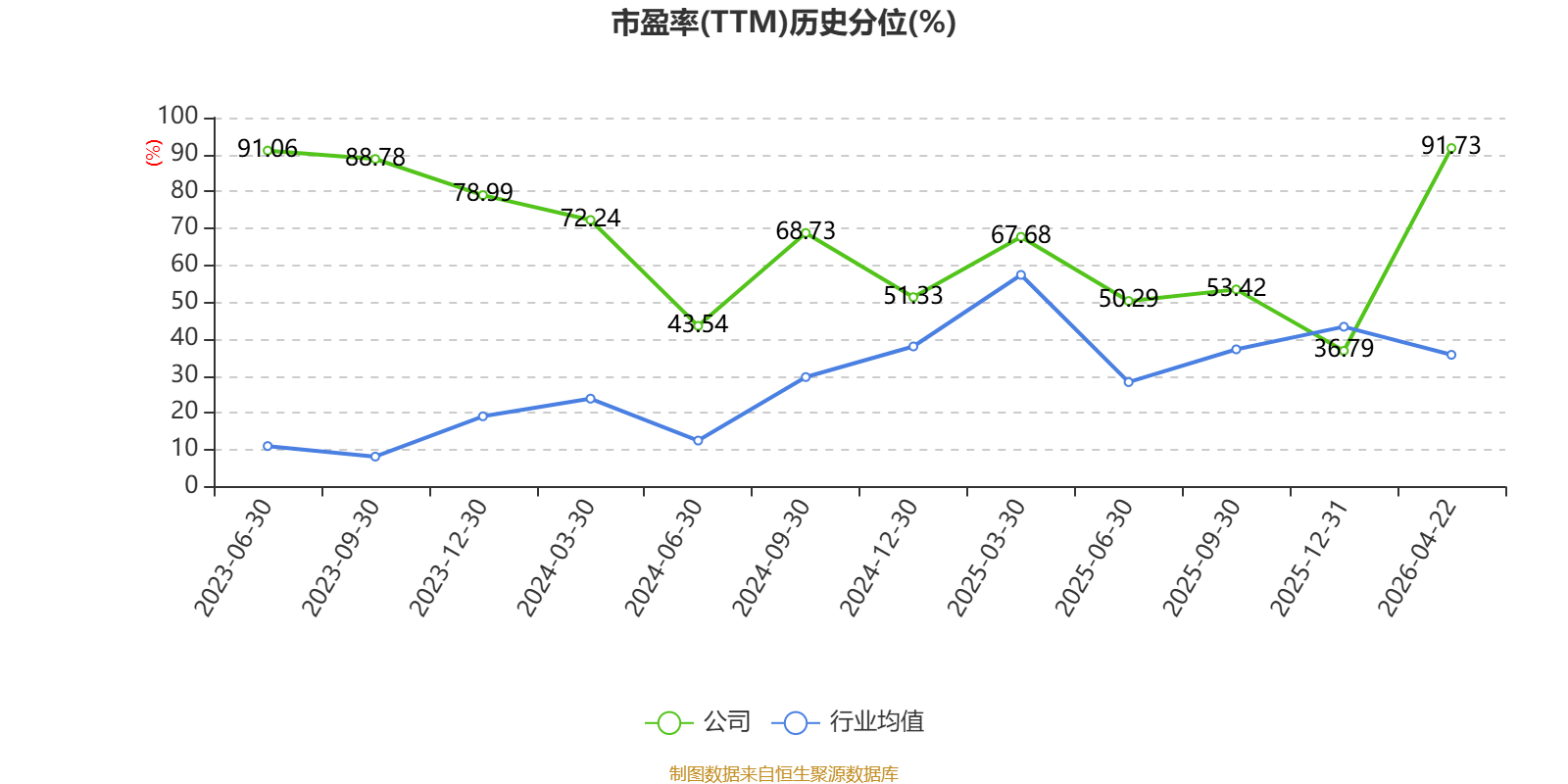 市盈率、市净率为负时,不显示当期分位数,会导致折线图中断。