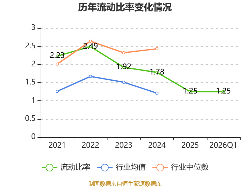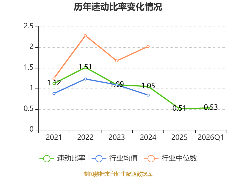 2026年第一季度,公司流动比率为1.25,速动比率为0.53。