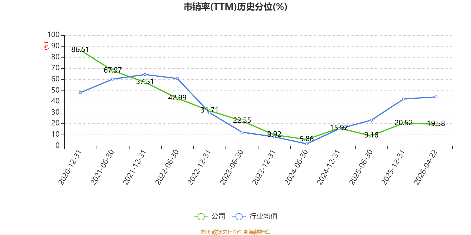 以4月22日收盘价计算,寒锐钴业目前市盈率(TTM)约为53.42倍,市净率(LF)约2.66倍,市销率(TTM)约2.09倍。